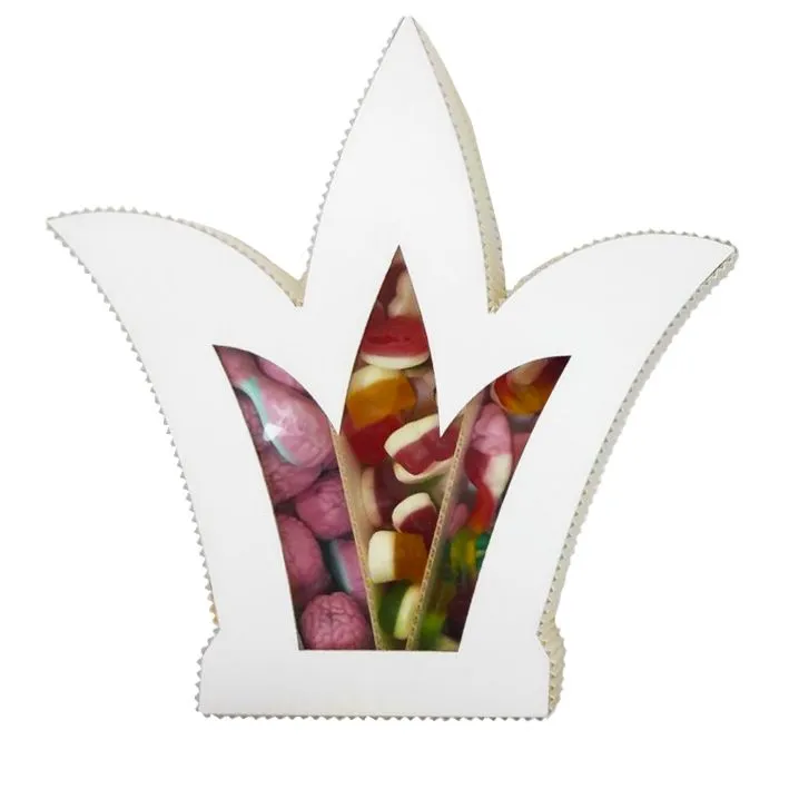 Коробка бумажная Белая корона с окном. Используют для упаковки и транспортировки конфет, орехов, шоколада при доставке.