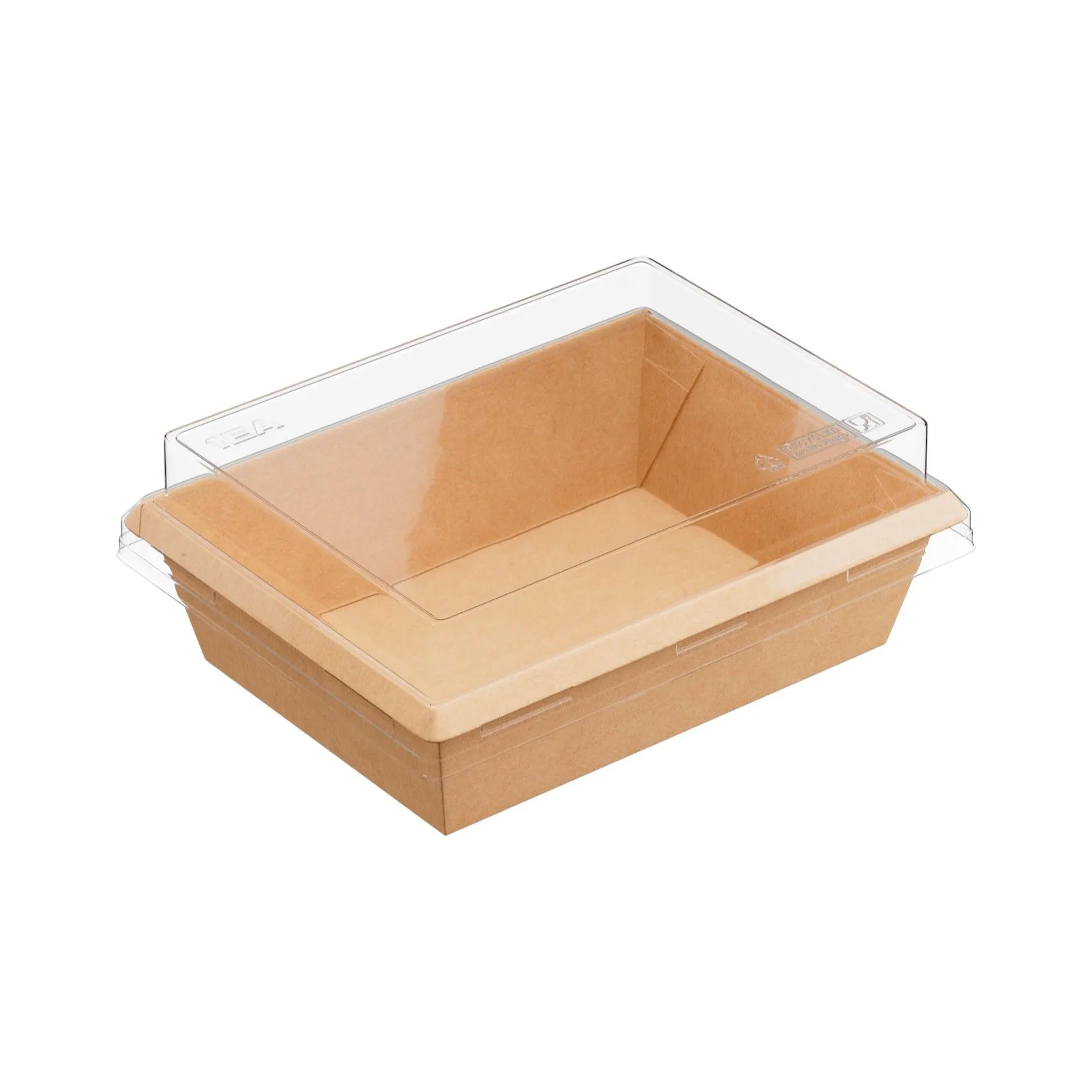 Изготовлен из прочного экологичного картона, имеет сформированный жёсткий борт (без сборки), защёлкивается в один клик без протеканий, устойчив к конденсату, с высокой барьерностью (не прожиривается), разогревается в СВЧ без крышки, произведен без клея и перерабатывается на 100%.