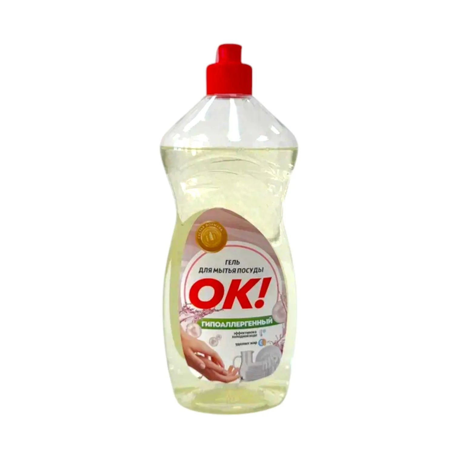 Моющее средство для посуды «ОК Гипоаллергенное» 800 мл — мягкий гель для безопасной ручной мойки посуды, кухонной утвари и детских принадлежностей. Гипоаллергенная формула без агрессивных ПАВ, красителей и сильных отдушек эффективно удаляет жир и загрязнения в холодной воде, полностью смывается, защищает кожу рук от сухости.