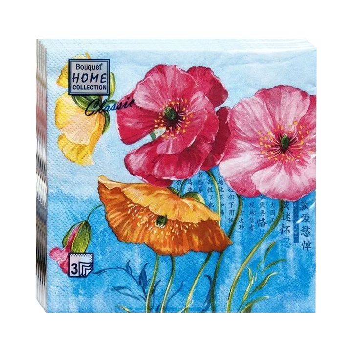 салфетки 3-сл 33х33 АРТ БУКЕТ Акварельные маки/20