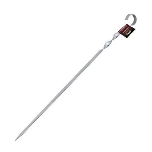 Изготовлен из нержавеющей стали, характеризующейся высокой степенью упругости. Благодаря такой особенности металла под тяжестью мяса шампур не деформируется и не сгибается.