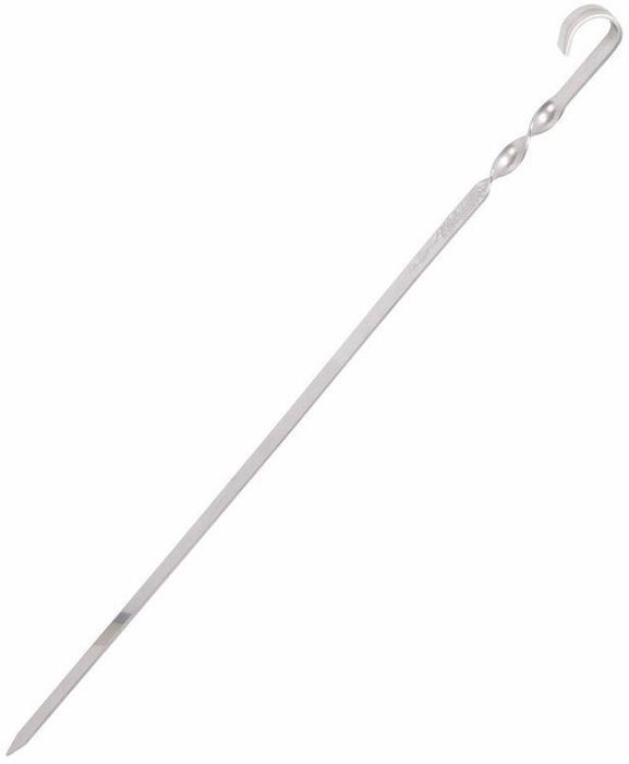 Изготовлен из нержавеющей стали, характеризующейся высокой степенью упругости. Благодаря такой особенности металла под тяжестью мяса шампур не деформируется и не сгибается.