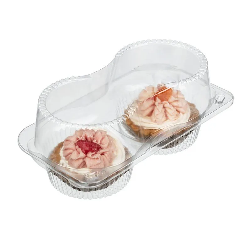 Двухсекционный контейнер-ракушка РК-2212С2КВ предназначен для упаковки двух кексов ромовая баба. Количество секций 2.