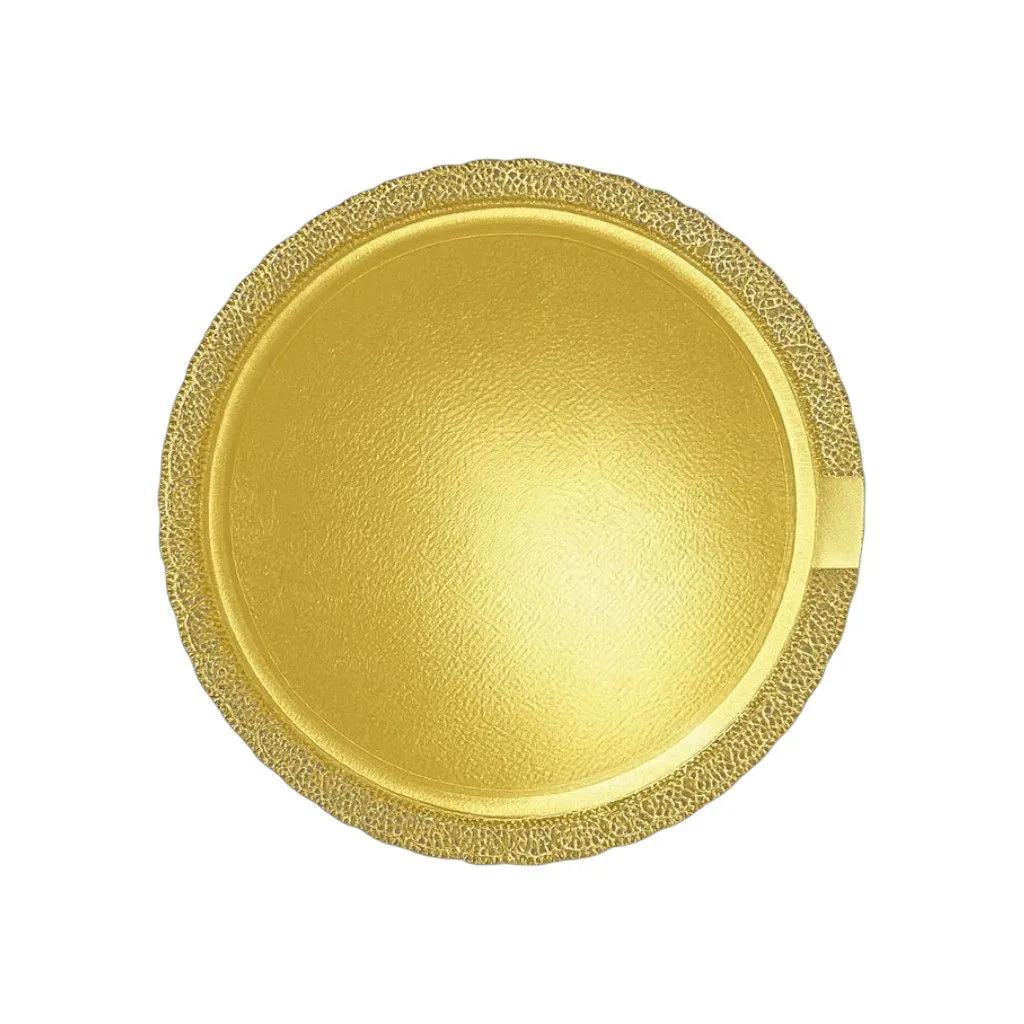 Поднос картонный круглый золотого цвета для тортов и пирожных. Диаметр 38 см. Толщина 3 мм.