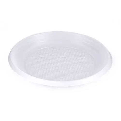Одноразовые тарелки изготовлены из высококачественного пластика. Материал экологически безопасен, не выделяет токсических веществ при взаимодействии с горячей пищей.  Предназначены для сервировки горячих и холодных блюд. Диаметр 205 мм