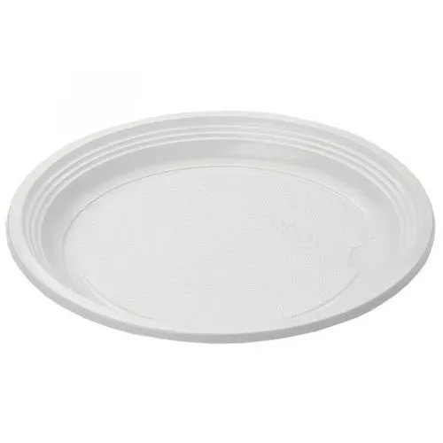 Одноразовые тарелки изготовлены из высококачественного пластика. Материал экологически безопасен, не выделяет токсических веществ при взаимодействии с горячей пищей.  Предназначены для сервировки горячих и холодных блюд. Диаметр 205 мм