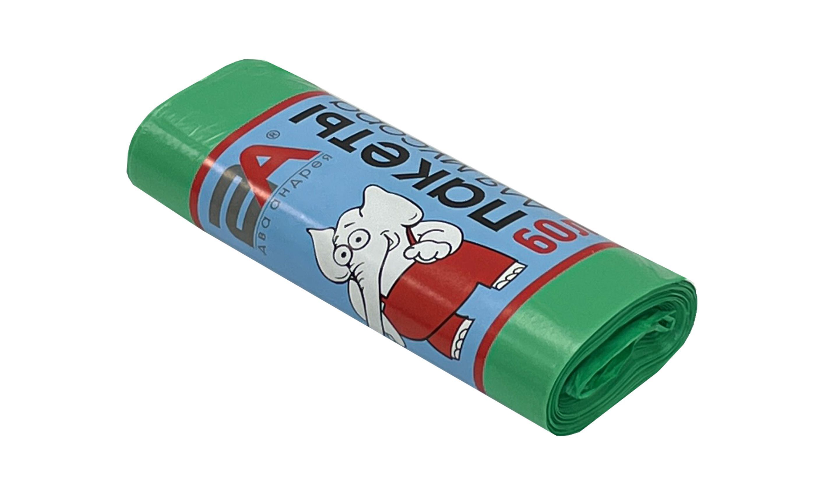 —пакеты д/мусора 60л 20шт "Слоны в рулоне" 2А зеленые