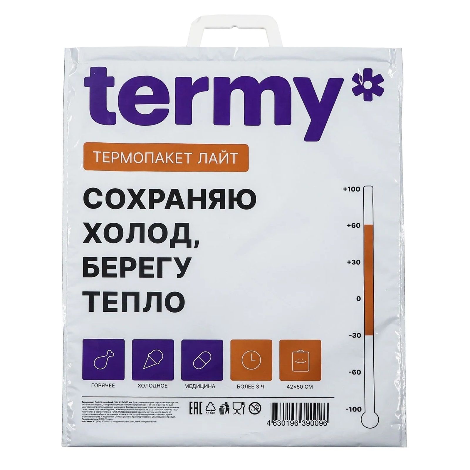 Трёхслойный, многоразовый и прочный термопакет  предназначен для поддержания температуры охлаждённых или горячих продуктов питания. Как и термоконтейнер, хладпакет подходит также для транспортировки лекарственных препаратов и детского питания. Пакет сохраняет температуру более 4 часов, он вместительный и его легко мыть. Термопакет для продуктов это хорошая альтернатива громоздким приспособлениям как термосумка, термоконтейнер, термобокс, ланч бокс, термокороб, переносной холодильник.Термоизоляционный пакет с дополнительным фольгированным слоем, надежно защищает содержимое от внешнего воздействия и тепла. Пакет холодильник для продуктов это легкий и портативный способ защитить еду в дороге, подойдет для кемпинга, пикника, рыбылки и отдыха на природе. Термопакет для замороженных продуктов не занимает много места и поэтому его легко положить в рюкзак или сумку.
