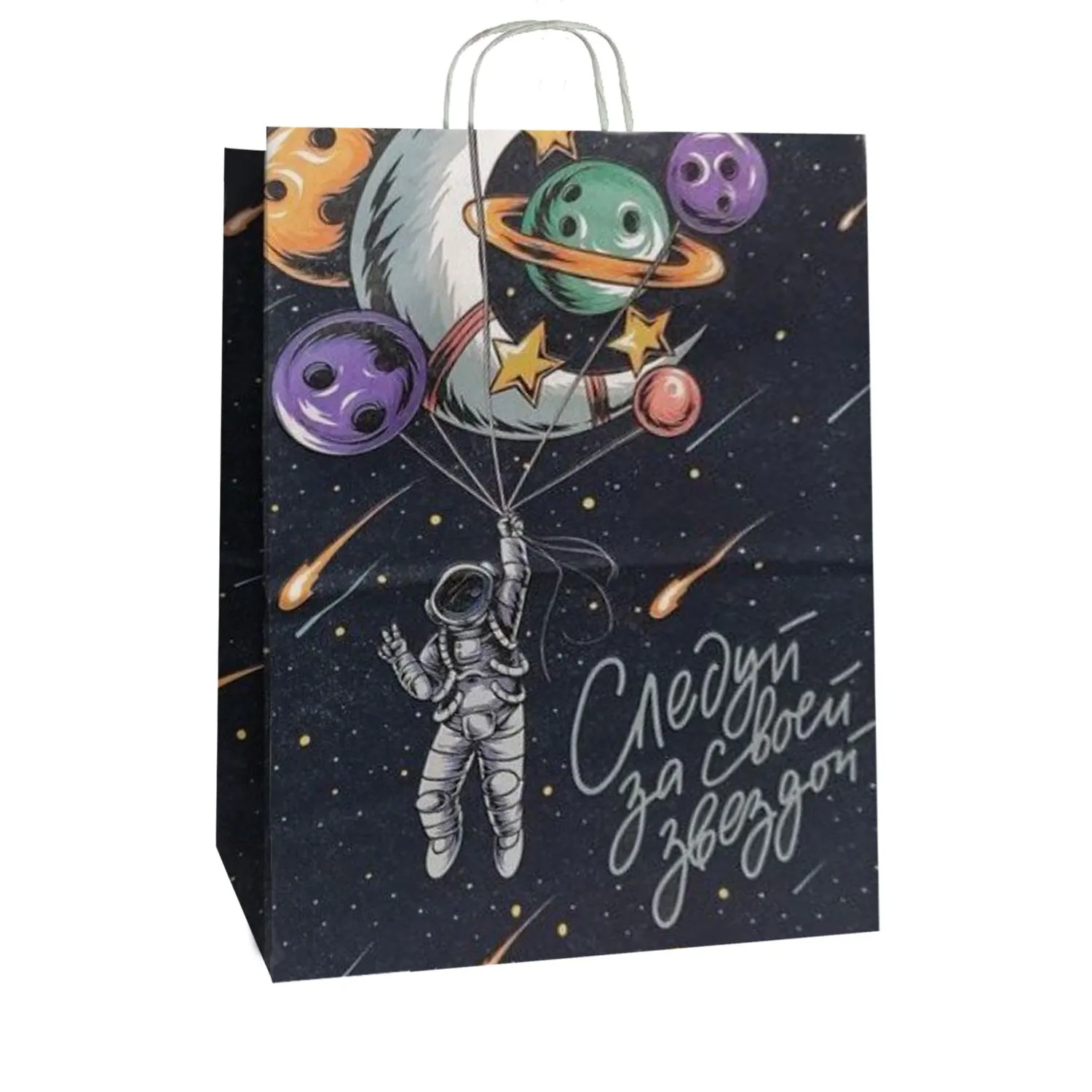 сумка бум. крафт 25х22х12 с круч. ручками Следуй за звездой *