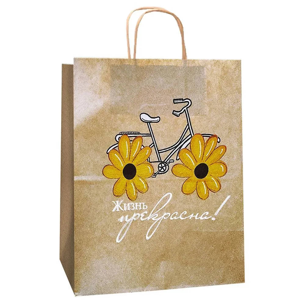 сумка бум. крафт 25х22х12 с круч. ручками Жизнь прекрасна *