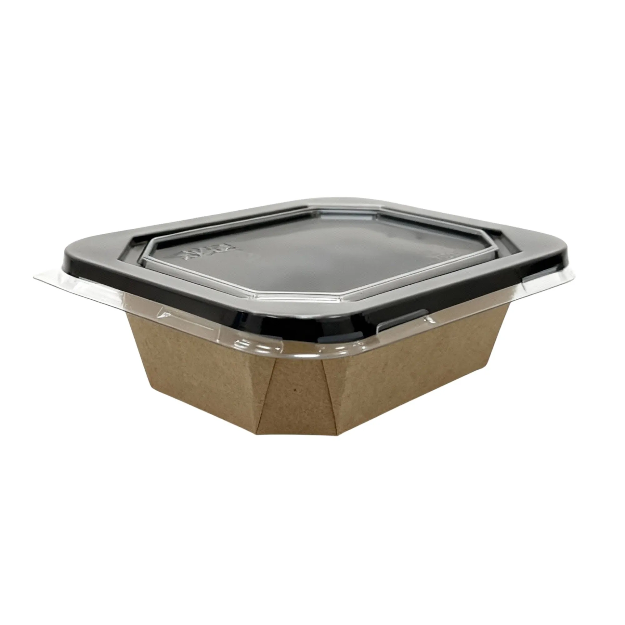 Запатентованная 8-угольная конструкция с широким сформованным бортиком обеспечивает повышенную жесткость без деформации — самый прочный среди картонных аналогов. Сформованная конструкция без клея не требует сборки, плоская RPET крышка закрывается одним движением с усиленными замками, исключая протекание. Выдерживает прожиривание, нагрев в СВЧ (+120°C), шоковую заморозку (-30°C), внутренняя влагостойкость и герметичность дна, подходит под запайку.