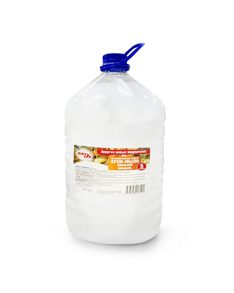 Состав и свойства: Кремообразное жидкое мыло с приятным миндальным ароматом; в основе — вода, поверхностно‑активные вещества (ПАВ) для мягкого очищения, глицерин и увлажняющие добавки, парфюмерная композиция «миндаль», краситель и консервант.