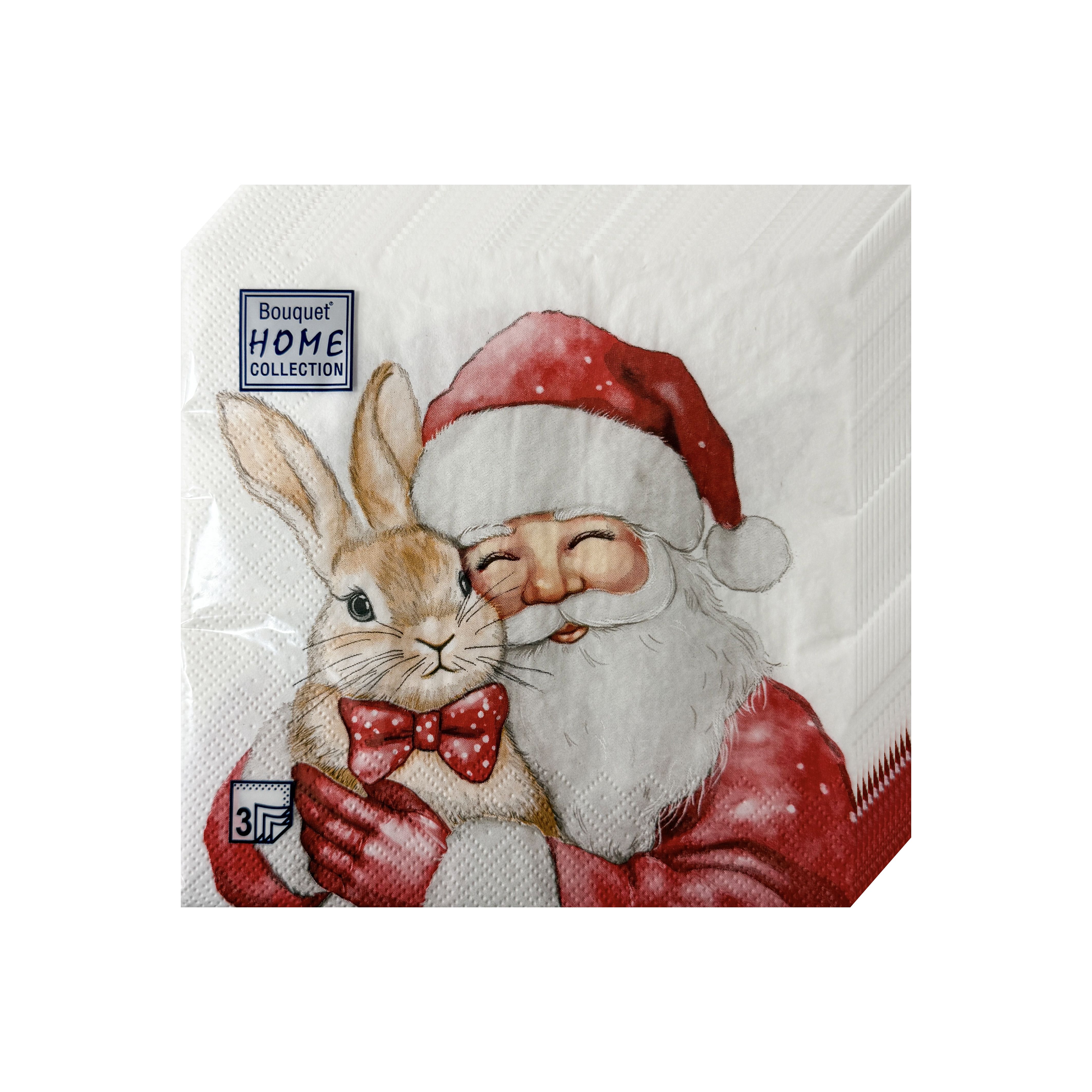 НГ салфетки 3-сл 33х33 Дед Мороз с кроликом /20