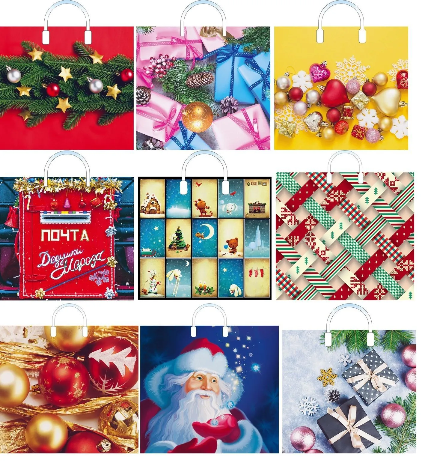 Пакет с прочной петлевой ручкой новогодней символики изготовлен из полиэтилена высокого давления. Пакет имеет гладкую глянцевую поверхность. Подходит для любых сфер использования (парфюмерия, бижутерия и другое), в том числе как подарочный пакет.