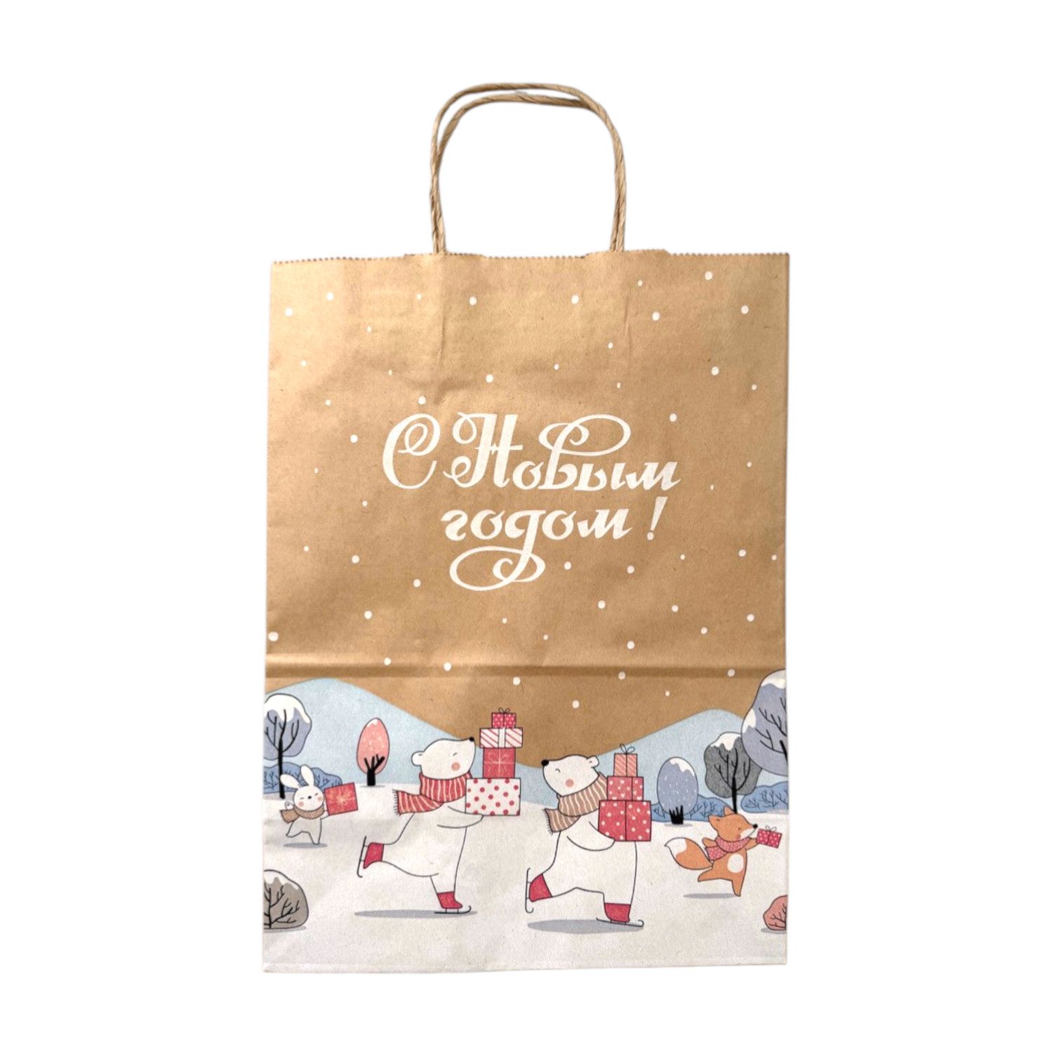 сумка бум. крафт 35х26х15 с круч. ручками МИШКИ НА ЛЬДУ